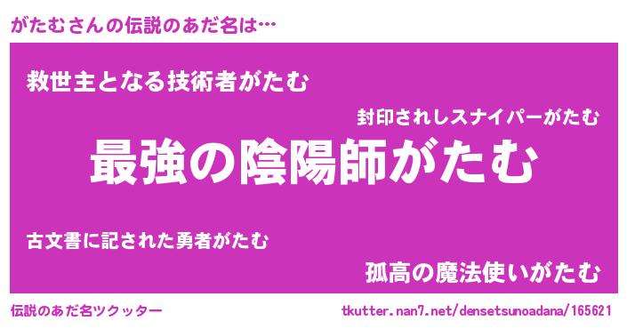 | ヒーロー風カッコイイあだ名 | 『仮面ガタダー』『最強戦士ガタム』 |