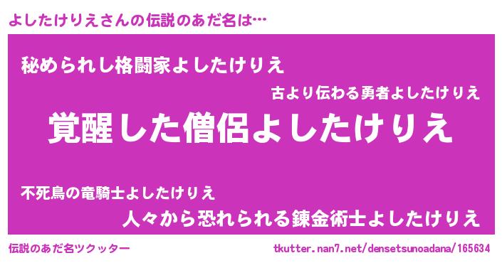 | ポケモン風あだ名 | 『ヨーシイ』『ヒヨシタケリエ』 |