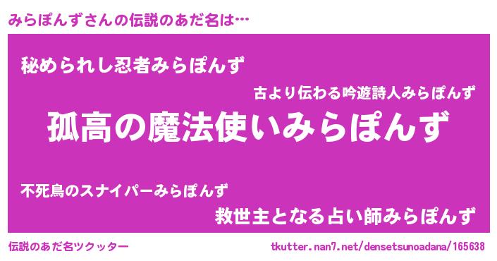 | 男性向けラノベタイトル風あだ名 | 『ミラポンズスレイヤー』 |