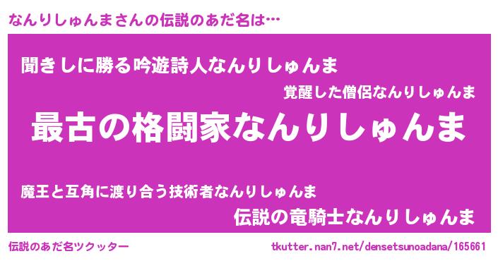 | 意味不明あだ名 | 『自称なんりしゅんま』 |