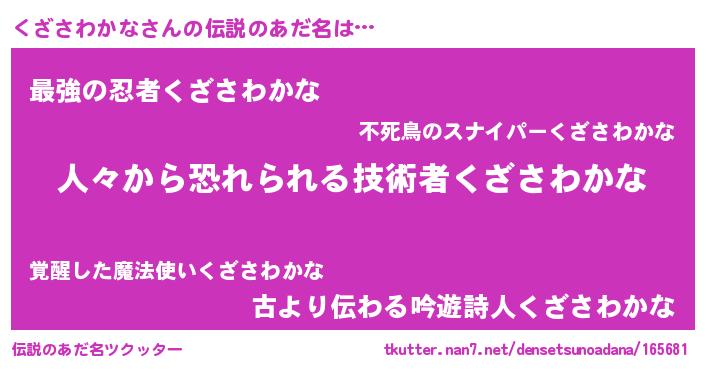 | ヒーロー風カッコイイあだ名 | 『超時空戦士クザサワカナ』 |