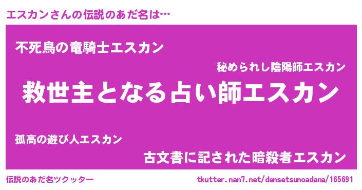 | ヒーロー風カッコイイあだ名 | 『仮面エスダー』『正義の使者エスカン』 |
