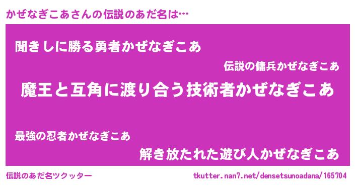 | ヘコむあだ名 | 『かぜなぎこあ(笑)』『かぜっぺ』 |