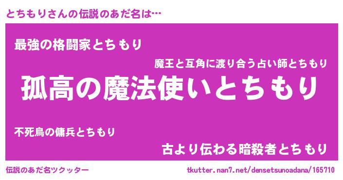 | ヒーロー風カッコイイあだ名 | 『仮面トチダー』『究極戦士トチモリ』 |