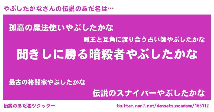 | 意味不明あだ名 | 『永久保存やぶしたかな』 |