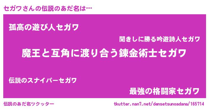 | 肩書あだ名 | 『セガワ上級大将』『セガワ総統』 |