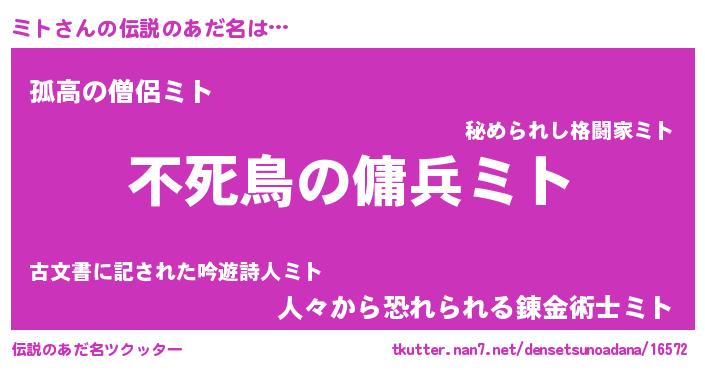 | ヒーロー風カッコイイあだ名 | 『スーパーミト』『幻影騎士ミト』 |