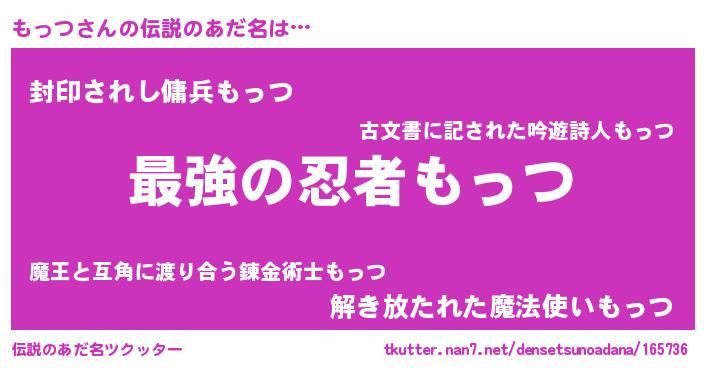 | ヒーロー風カッコイイあだ名 | 『ウルトラもっつマン』『仮面モッダー』 |