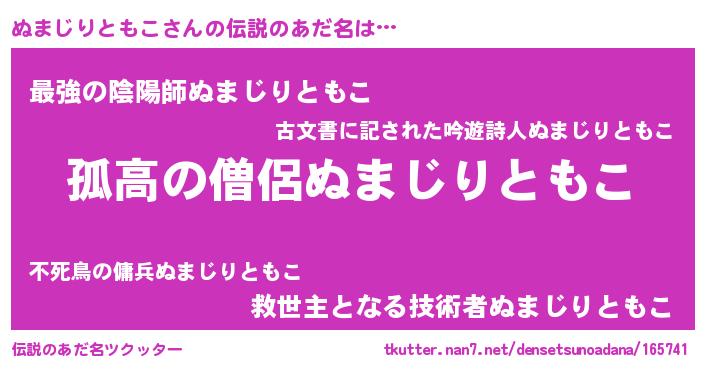 | 意味不明あだ名 | 『とにかく怪しいぬまじりともこ』 |