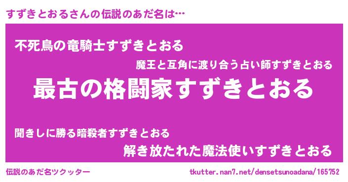 | ファンタジー風あだ名 | 『エターナルスズキトオルー』 |