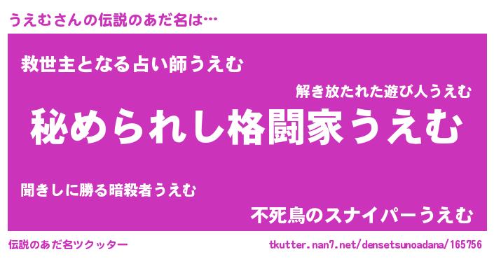 | ヒーロー風カッコイイあだ名 | 『ウルトラうえむマン』『愛の使者うえむ』 |