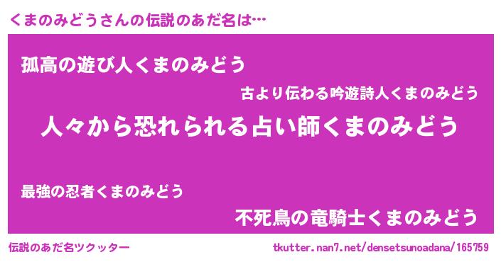 | ヒーロー風カッコイイあだ名 | 『正義の使者くまのみどう』 |