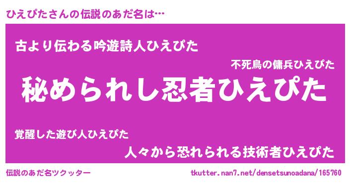 | 意味不明あだ名 | 『ひえぴたフォーエバー』 |