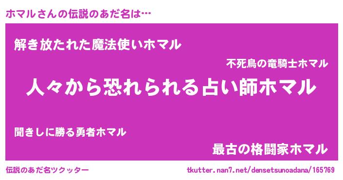 | ヒーロー風カッコイイあだ名 | 『友情の使者ホマル』『魔戒騎士ホマ』 |