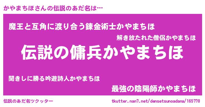 | ヒーロー風カッコイイあだ名 | 『スーパーカヤマチホ』『暗黒騎士カヤ』 |