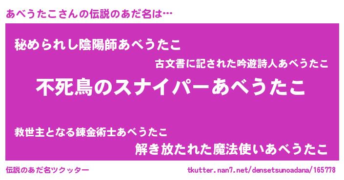 | 女子向けラノベタイトル風あだ名 | 『あべうたこ姫と円卓の騎士』 |