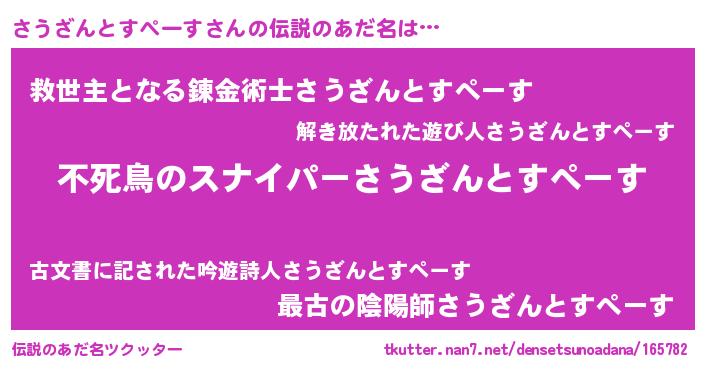 | 意味不明あだ名 | 『自称さうざんとすぺーす』 |