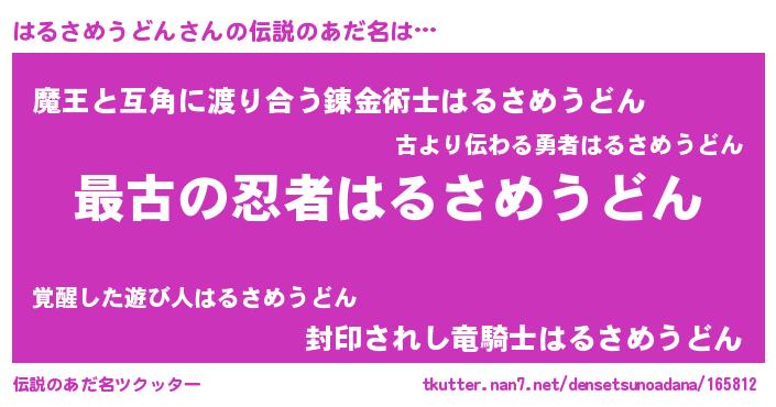 | ファンタジー風あだ名 | 『エターナルハルサメウドンー』 |