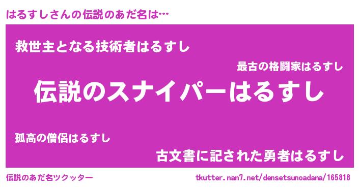 | ヒーロー風カッコイイあだ名 | 『スーパーハルスシ』『仮面ハルダー』 |