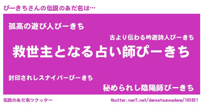 | 男性向けラノベタイトル風あだ名 | 『ノーゲーム・ノーピーキチ』 |