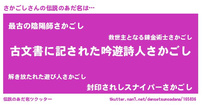 | 意味不明あだ名 | 『永久保存さかごし』『自称さかごし』 |
