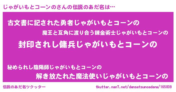 | 意味不明あだ名 | 『自称じゃがいもとコーンの』 |