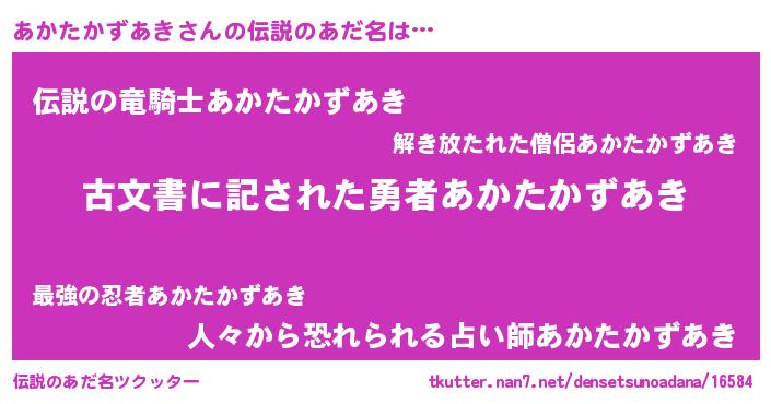 | 意味不明あだ名 | 『ニラ科あかたかずあき属』 |