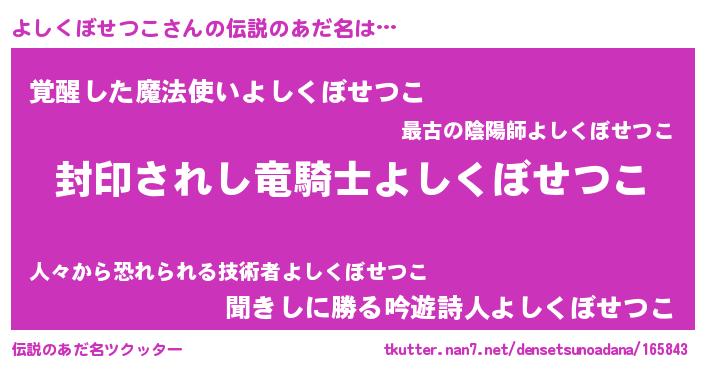 | 意味不明あだ名 | 『自称よしくぼせつこ』 |