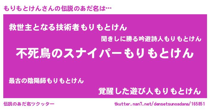 | 意味不明あだ名 | 『自称もりもとけん』 |