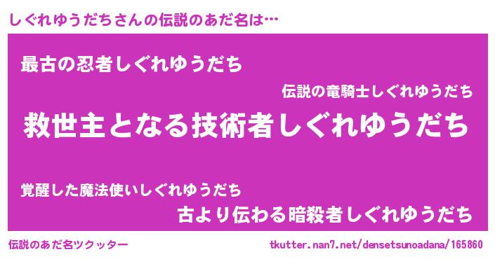 | 女子向けラノベタイトル風あだ名 | 『死神しぐれゆうだちの再婚』 |