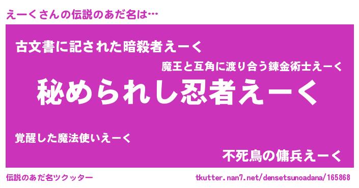 | 意味不明あだ名 | 『えーくフォーエバー』『自称えーく』 |
