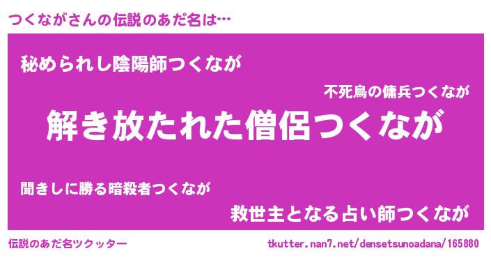 | ヒーロー風カッコイイあだ名 | 『銀牙騎士ツク』『ウルトラつくながマン』 |
