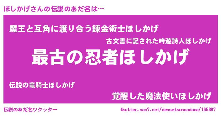 | 意味不明あだ名 | 『ほしかげフォーエバー』『自称ほしかげ』 |