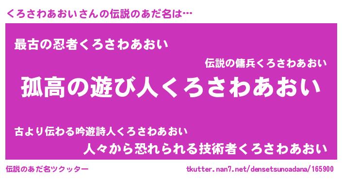 | 意味不明あだ名 | 『とにかく怪しいくろさわあおい』 |