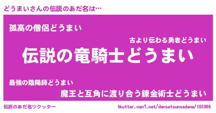 | 男性向けラノベタイトル風あだ名 | 『どうまいの憂鬱』 |