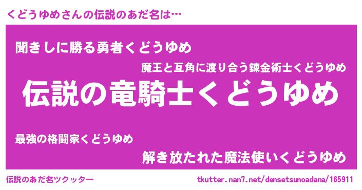 | ヒーロー風カッコイイあだ名 | 『仮面クドダー』『スーパークドウユメ』 |