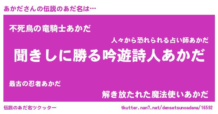 | 意味不明あだ名 | 『住所不定無職あかだ(9歳)』『自称あかだ』 |