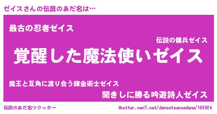 | 意味不明あだ名 | 『自称ゼイス』『とにかく怪しいゼイス』 |