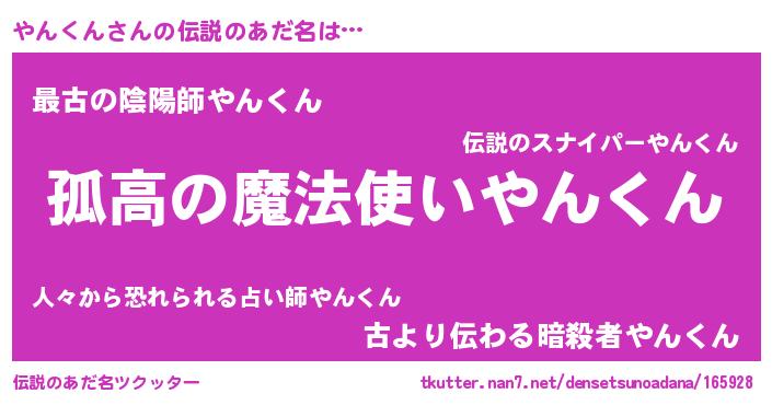 | ヒーロー風カッコイイあだ名 | 『ウルトラ戦士ヤンクン』『銀牙騎士ヤン』 |