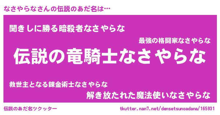 | 胡散臭い通販商品みたいなあだ名 | 『必ず成功するブレスレット…その名も「なさやらな」』 |