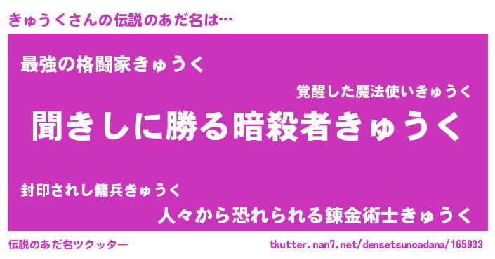 | 意味不明あだ名 | 『永久保存きゅうく』『自称きゅうく』 |