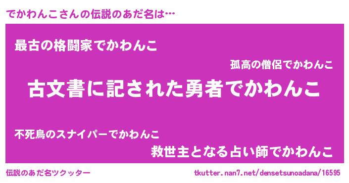 | 意味不明あだ名 | 『住所不定無職でかわんこ(95歳)』 |