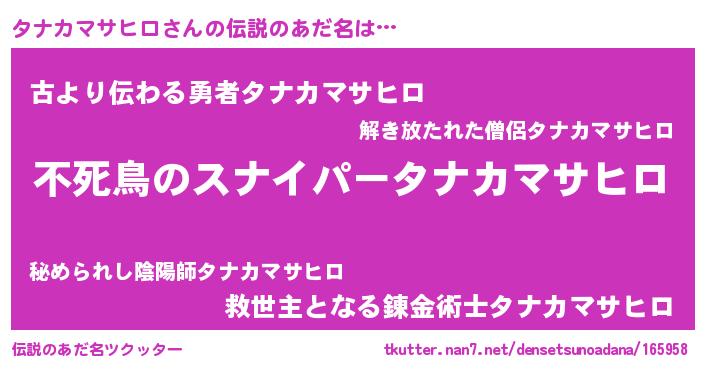| ヘコむあだ名 | 『タナもー』『タナカマサヒロ(震え声)』 |