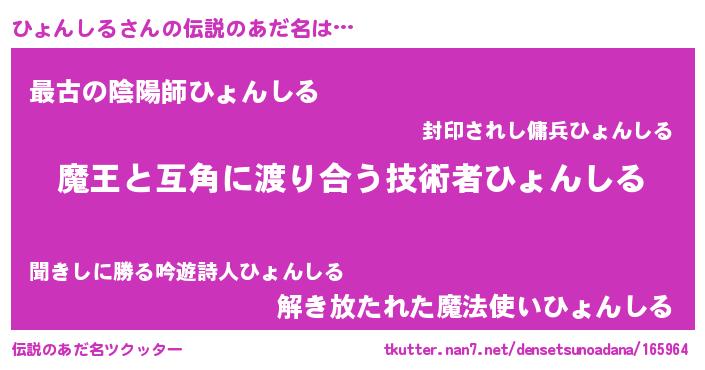 | 男性向けラノベタイトル風あだ名 | 『Re:ひょんしるから始める異世界生活』 |