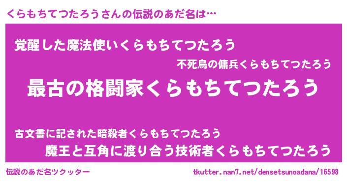 | 意味不明あだ名 | 『くらもちてつたろうフォーエバー』 |