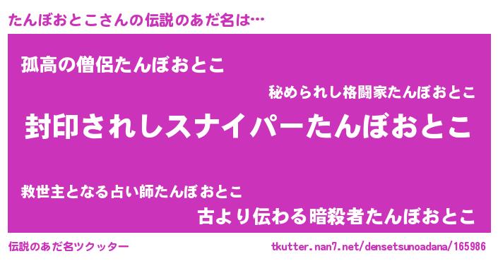 | 男性向けラノベタイトル風あだ名 | 『タンボオトコアートオンライン』 |