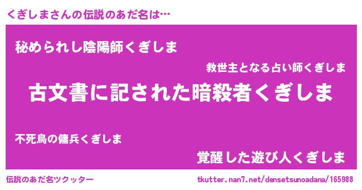 | 意味不明あだ名 | 『永久保存くぎしま』 |