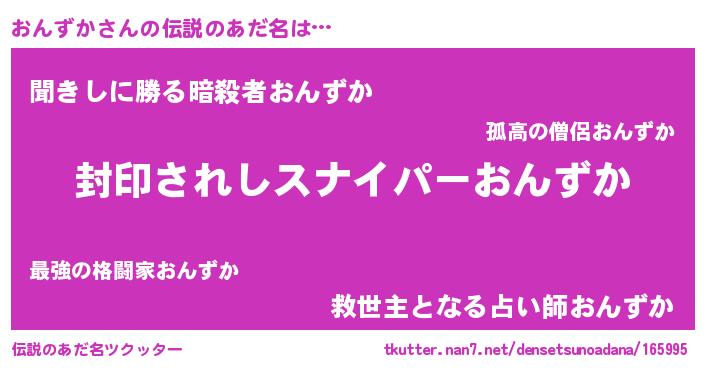 | 胡散臭い通販商品みたいなあだ名 | 『億万長者になれる霊験あらたかなお札…その名も「おんずか」』 |