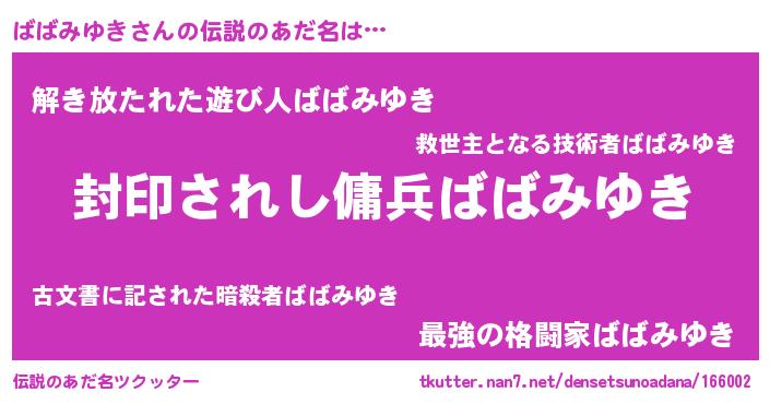 | ヒーロー風カッコイイあだ名 | 『スーパーババミユキ』『黄金騎士ババ』 |