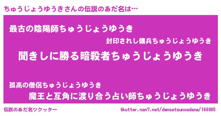 | 男性向けラノベタイトル風あだ名 | 『ちゅうじょうゆうきという概念が存在しない退屈な世界 』 |